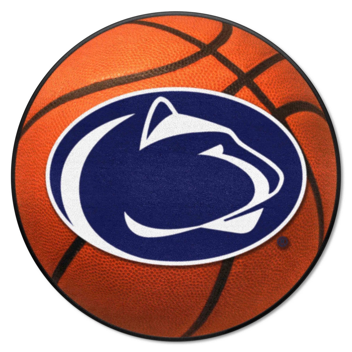 | Penn State Nittany Lions Basketball Rug - 27in. Diameter 9 Ounce, 100 % Nylon Face Recycled vinyl backing for a durable and longer-lasting product Machine made and tufted in the USA Non-skid backing with taped borders for added durability Machine washable; vacuum regularly and spot clean for any easy and quick clean Officially licensed and chromojet-printed in true team colors for vibrant, lasting color Pennsylvania State University in Pennsylvania |