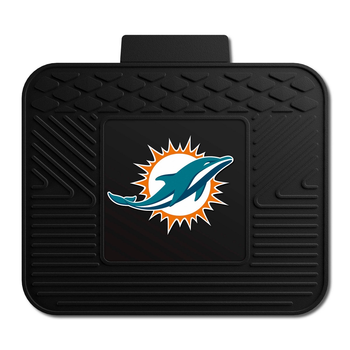 | Miami Dolphins Back Seat Car Utility Mat - 14in. x 17in. Deep pockets catch and hold dirt and water as the ribs scrap and clean the bottoms of shoes Universal size to fit all vehicle sizes 100% heavy-duty vinyl adds durability and longer life Nibbed backing to keep from skidding Machine-made in the USA 3-D logo molded in true team colors NFL - Miami Dolphins in Florida WARNING: This product can expose you to chemicals including, DINP, which is known to the State of California to casue cancer. For more information, go to www.P65Warnings.ca.gov NFL National Football League |