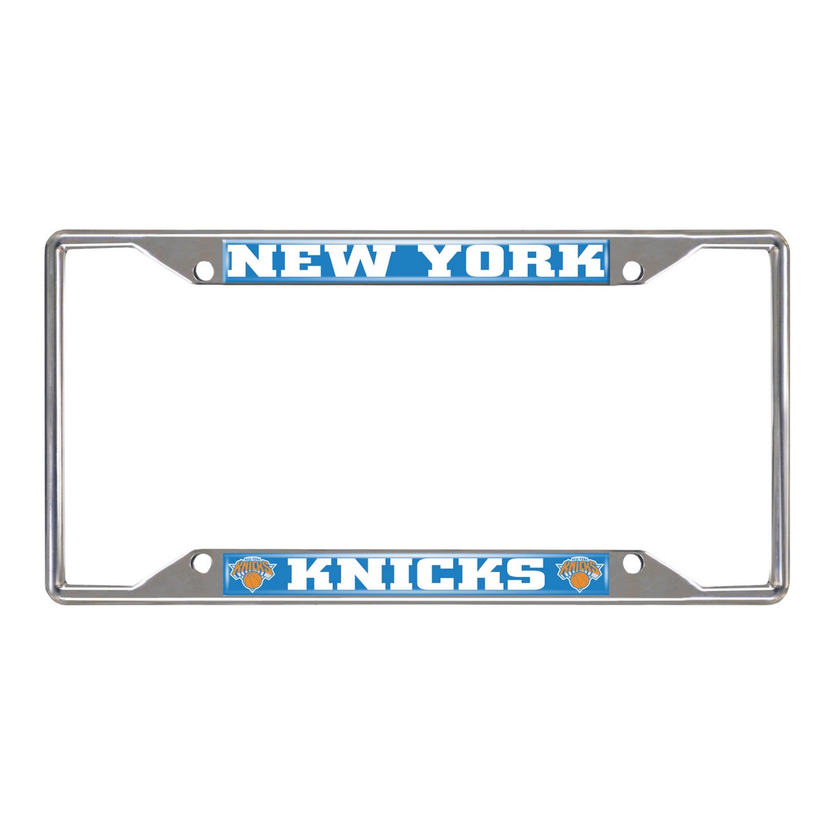 | New York Knicks Chrome Metal License Plate Frame, 6.25in x 12.25in Made of chrome metal with a durable finish that resists the elements Team logo is domed and features vibrant colors that catch the eye 4 pre-drilled holes ensure a safe and secure fit, plus no rattling noises while driving Slimline design helps keep registration tag visible Fits most standard plates, measures 6.25" x 12.25" Screws not included NBA - New York Knicks in New York NBA National Basketball Association |