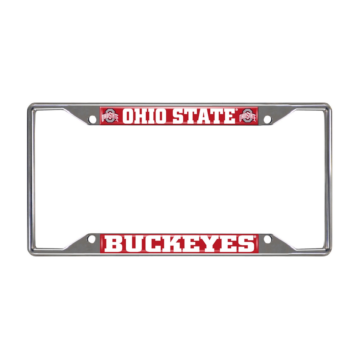 Ohio State Buckeyes Chrome Metal License Plate Frame, 6.25in x 12.25in
