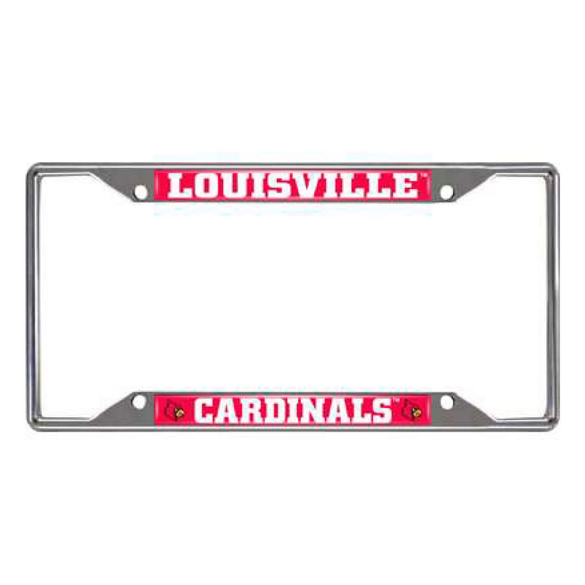 | Louisville Cardinals Chrome Metal License Plate Frame, 6.25in x 12.25in Made of chrome metal with a durable finish that resists the elements Team logo is domed and features vibrant colors that catch the eye 4 pre-drilled holes ensure a safe and secure fit, plus no rattling noises while driving Slimline design helps keep registration tag visible Fits most standard plates, measures 6.25" x 12.25" Screws not included University of Louisville in Kentucky |