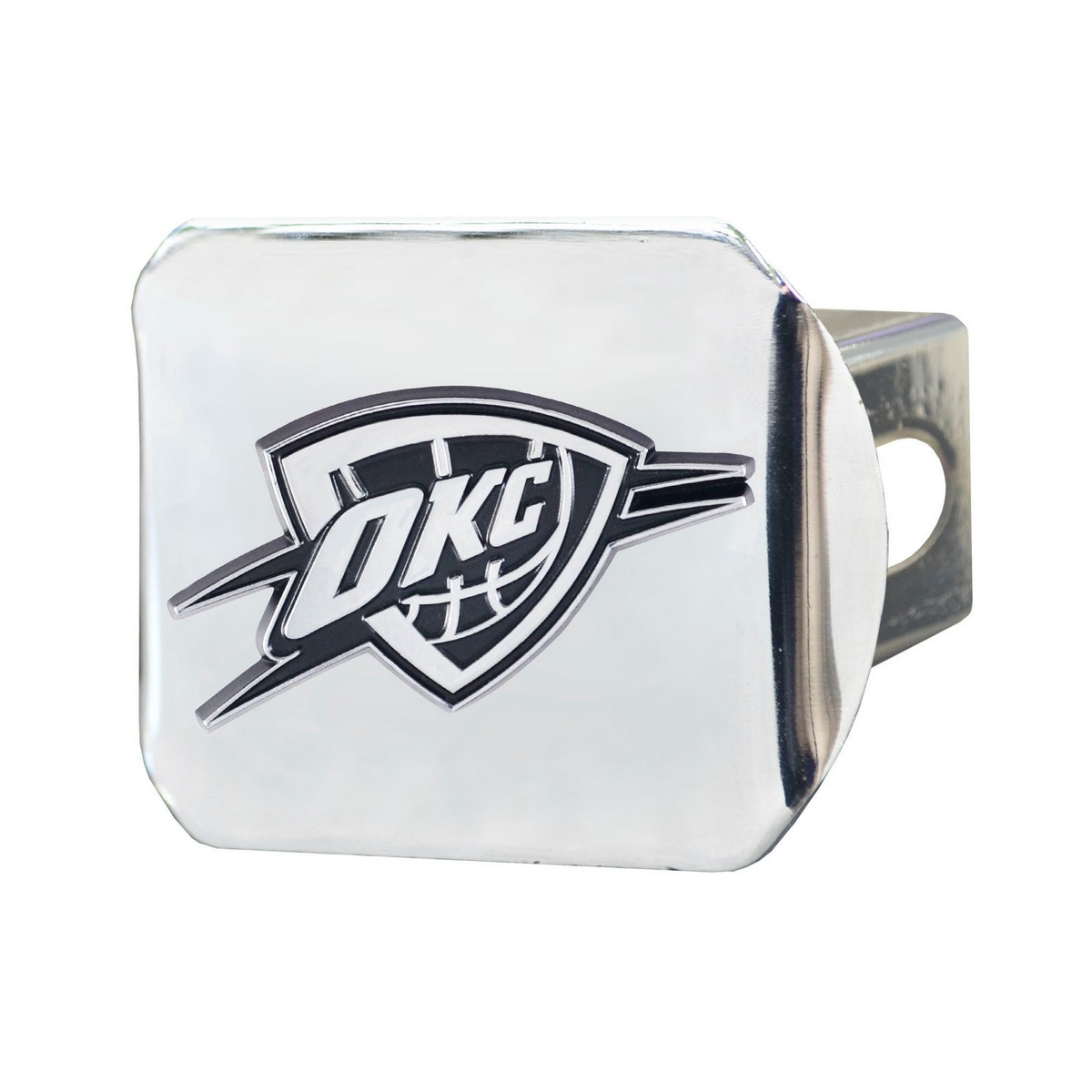 | Oklahoma City Thunder Chrome Metal Hitch Cover with Chrome Metal 3D Emblem Completely wraps your hitch to keep all debris out Fits all 2 in. Class III hitches for a secure installation Made of chromed metal for a sleek design 3-D molded design to clearly outline the team logo Attaches without use of tools for an easy on and off; pin is not included Keeps your hitch clear of debris NBA - Oklahoma City Thunder in Oklahoma NBA National Basketball Association |