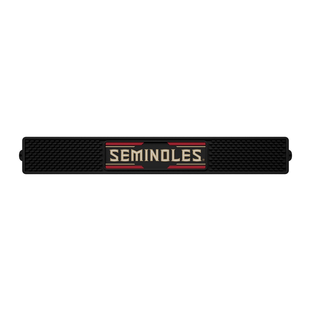 | Florida State Seminoles Bar Drink Mat - 3.25in. x 24in. Durable vinyl construction 1/4" deep, holds liquids Easily cleaned, just run under the faucet Protects surfaces from spills and condensation 3-D logo molded in true team colors Made in the USA Florida State University in Florida WARNING: This product can expose you to chemicals including, DINP, which is known to the State of California to casue cancer. For more information, go to www.P65Warnings.ca.gov |