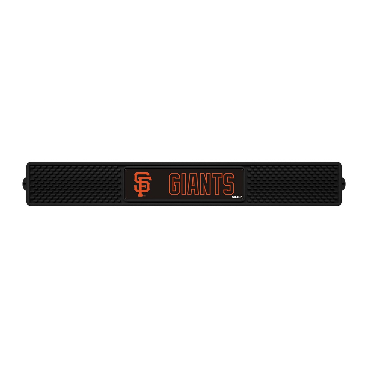 | San Francisco Giants Bar Drink Mat - 3.25in. x 24in. Durable vinyl construction 1/4" deep, holds liquids Easily cleaned, just run under the faucet Protects surfaces from spills and condensation 3-D logo molded in true team colors Made in the USA MLB - San Francisco Giants in California WARNING: This product can expose you to chemicals including, DINP, which is known to the State of California to casue cancer. For more information, go to www.P65Warnings.ca.gov MLB Major League Baseball |