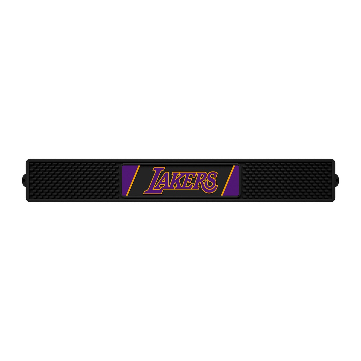 | Los Angeles Lakers Bar Drink Mat - 3.25in. x 24in. Durable vinyl construction 1/4" deep, holds liquids Easily cleaned, just run under the faucet Protects surfaces from spills and condensation 3-D logo molded in true team colors Made in the USA NBA - Los Angeles Lakers in California WARNING: This product can expose you to chemicals including, DINP, which is known to the State of California to casue cancer. For more information, go to www.P65Warnings.ca.gov NBA National Basketball Association |