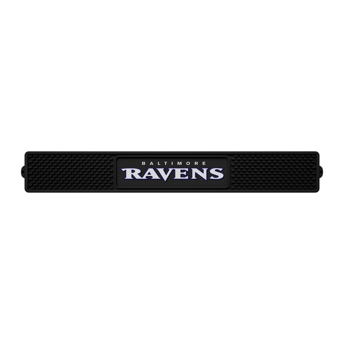 | Baltimore Ravens Bar Drink Mat - 3.25in. x 24in. Durable vinyl construction 1/4" deep, holds liquids Easily cleaned, just run under the faucet Protects surfaces from spills and condensation 3-D logo molded in true team colors Made in the USA NFL - Baltimore Ravens in Maryland WARNING: This product can expose you to chemicals including, DINP, which is known to the State of California to casue cancer. For more information, go to www.P65Warnings.ca.gov NFL National Football League |