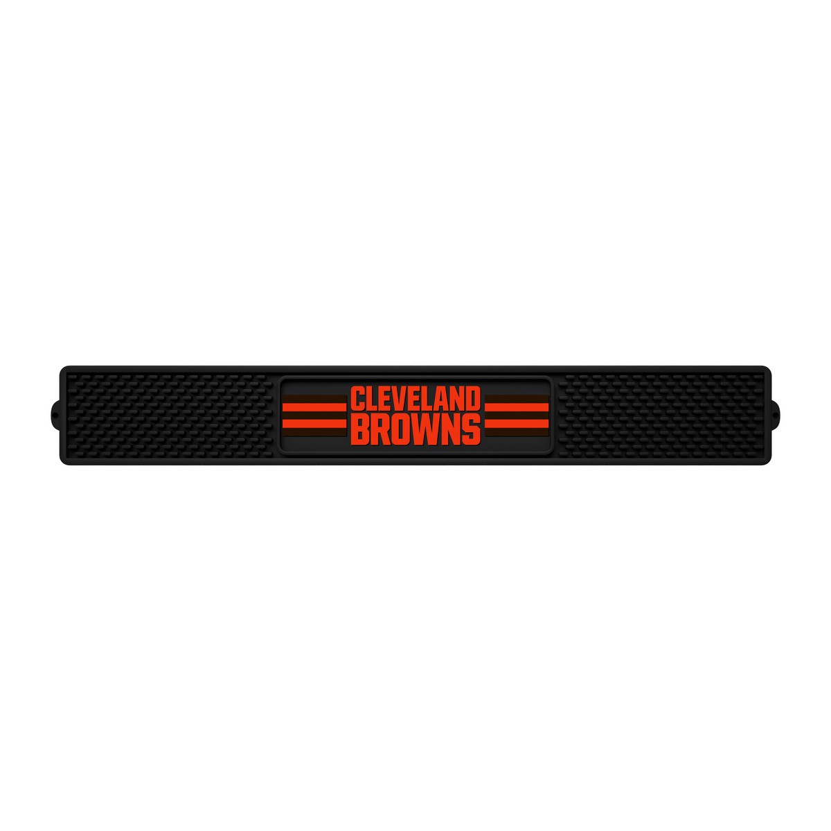 | Cleveland Browns Bar Drink Mat - 3.25in. x 24in. Durable vinyl construction 1/4" deep, holds liquids Easily cleaned, just run under the faucet Protects surfaces from spills and condensation 3-D logo molded in true team colors Made in the USA NFL - Cleveland Browns in Ohio WARNING: This product can expose you to chemicals including, DINP, which is known to the State of California to casue cancer. For more information, go to www.P65Warnings.ca.gov NFL National Football League |