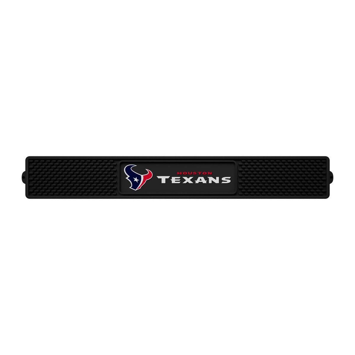 | Houston Texans Bar Drink Mat - 3.25in. x 24in. Durable vinyl construction 1/4" deep, holds liquids Easily cleaned, just run under the faucet Protects surfaces from spills and condensation 3-D logo molded in true team colors Made in the USA NFL - Houston Texans in Texas WARNING: This product can expose you to chemicals including, DINP, which is known to the State of California to casue cancer. For more information, go to www.P65Warnings.ca.gov NFL National Football League |