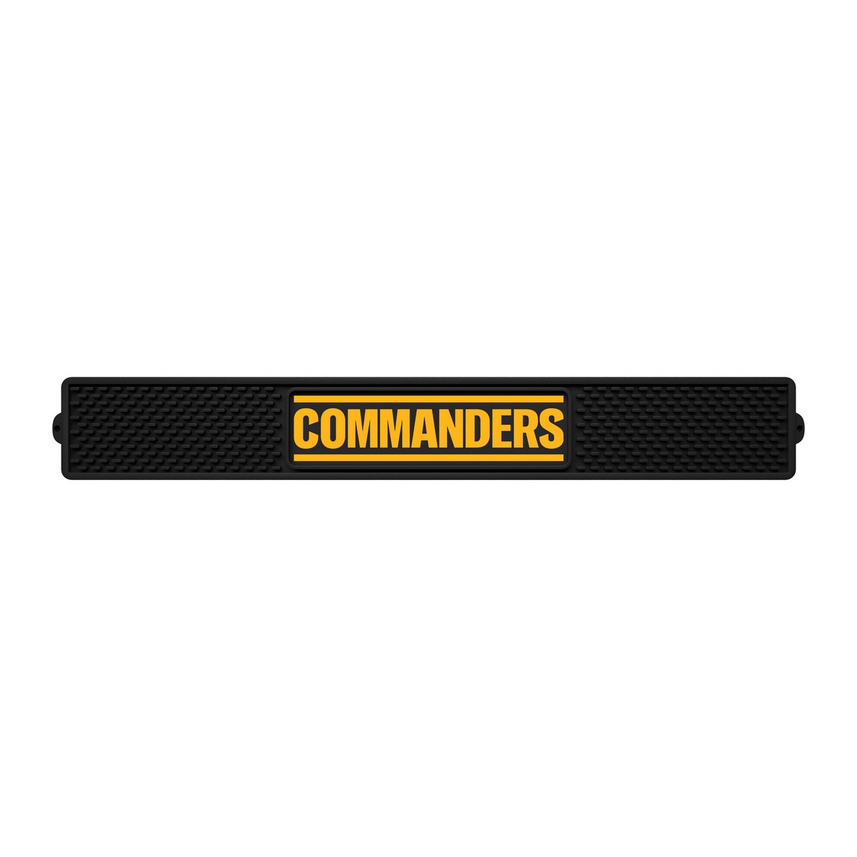 | Washington Commanders Bar Drink Mat - 3.25in. x 24in. Durable vinyl construction 1/4" deep, holds liquids Easily cleaned, just run under the faucet Protects surfaces from spills and condensation 3-D logo molded in true team colors Made in the USA NFL - Washington Commanders in Maryland WARNING: This product can expose you to chemicals including, DINP, which is known to the State of California to casue cancer. For more information, go to www.P65Warnings.ca.gov NFL National Football League |