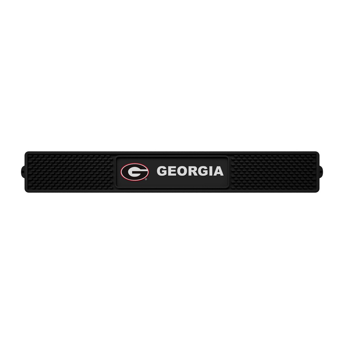 | Georgia Bulldogs Bar Drink Mat - 3.25in. x 24in. Durable vinyl construction 1/4" deep, holds liquids Easily cleaned, just run under the faucet Protects surfaces from spills and condensation 3-D logo molded in true team colors Made in the USA University of Georgia in Georgia WARNING: This product can expose you to chemicals including, DINP, which is known to the State of California to casue cancer. For more information, go to www.P65Warnings.ca.gov |