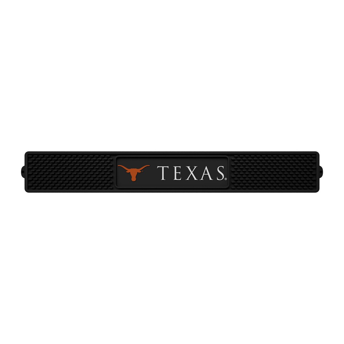 | Texas Longhorns Bar Drink Mat - 3.25in. x 24in. Durable vinyl construction 1/4" deep, holds liquids Easily cleaned, just run under the faucet Protects surfaces from spills and condensation 3-D logo molded in true team colors Made in the USA University of Texas in Texas WARNING: This product can expose you to chemicals including, DINP, which is known to the State of California to casue cancer. For more information, go to www.P65Warnings.ca.gov |