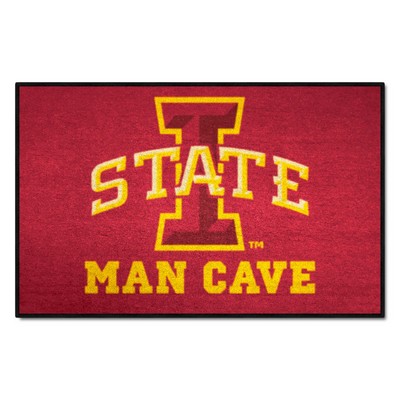 | Iowa State Cyclones Man Cave Starter Mat Accent Rug - 19in. x 30in. 9 Ounce, 100 % Nylon Face Recycled vinyl backing for a durable and longer-lasting product Machine made and tufted in the USA Non-skid backing with serged borders for added durability Machine washable; vacuum regularly and spot clean for any easy and quick clean Officially licensed and chromojet-printed in true team colors for vibrant, lasting color Iowa State University in Iowa |