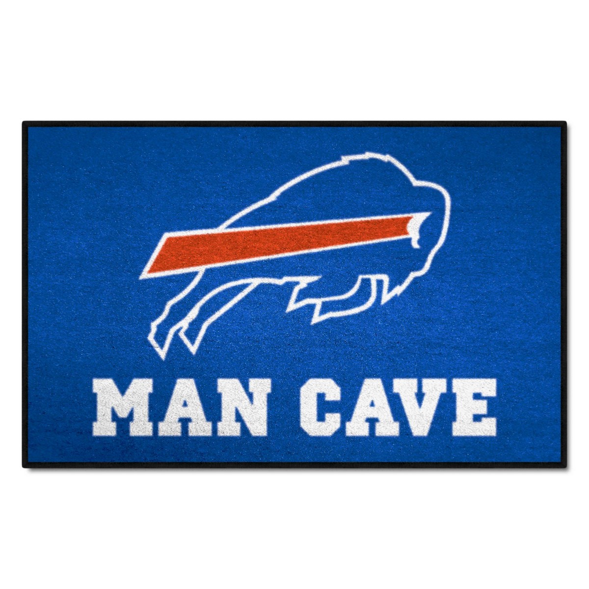 | Buffalo Bills Man Cave Starter Mat Accent Rug - 19in. x 30in. 9 Ounce, 100 % Nylon Face Recycled vinyl backing for a durable and longer-lasting product Machine made and tufted in the USA Non-skid backing with serged borders for added durability Machine washable; vacuum regularly and spot clean for any easy and quick clean Officially licensed and chromojet-printed in true team colors for vibrant, lasting color NFL - Buffalo Bills in New York NFL National Football League |