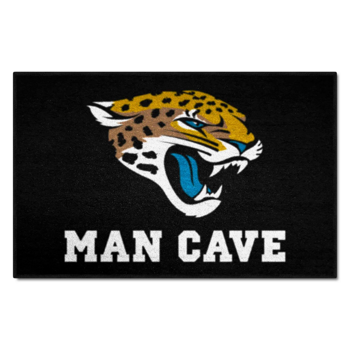 | Jacksonville Jaguars Man Cave Starter Mat Accent Rug - 19in. x 30in. 9 Ounce, 100 % Nylon Face Recycled vinyl backing for a durable and longer-lasting product Machine made and tufted in the USA Non-skid backing with serged borders for added durability Machine washable; vacuum regularly and spot clean for any easy and quick clean Officially licensed and chromojet-printed in true team colors for vibrant, lasting color NFL - Jacksonville Jaguars in Florida NFL National Football League |