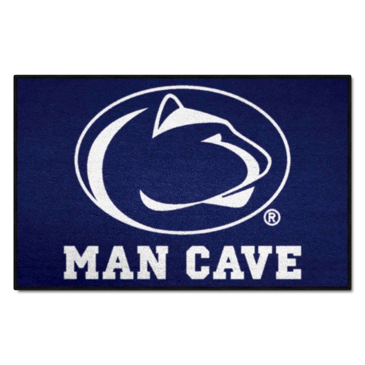 | Penn State Nittany Lions Man Cave Starter Mat Accent Rug - 19in. x 30in. 9 Ounce, 100 % Nylon Face Recycled vinyl backing for a durable and longer-lasting product Machine made and tufted in the USA Non-skid backing with serged borders for added durability Machine washable; vacuum regularly and spot clean for any easy and quick clean Officially licensed and chromojet-printed in true team colors for vibrant, lasting color Pennsylvania State University in Pennsylvania |