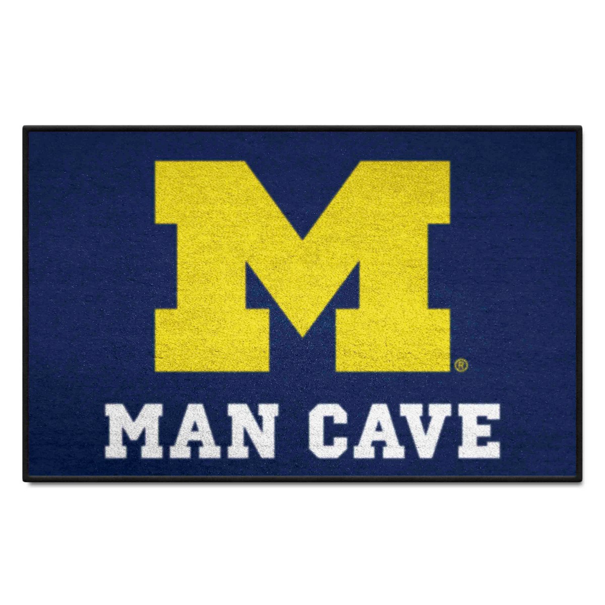 | Michigan Wolverines Man Cave Starter Mat Accent Rug - 19in. x 30in. 9 Ounce, 100 % Nylon Face Recycled vinyl backing for a durable and longer-lasting product Machine made and tufted in the USA Non-skid backing with serged borders for added durability Machine washable; vacuum regularly and spot clean for any easy and quick clean Officially licensed and chromojet-printed in true team colors for vibrant, lasting color University of Michigan in Michigan |