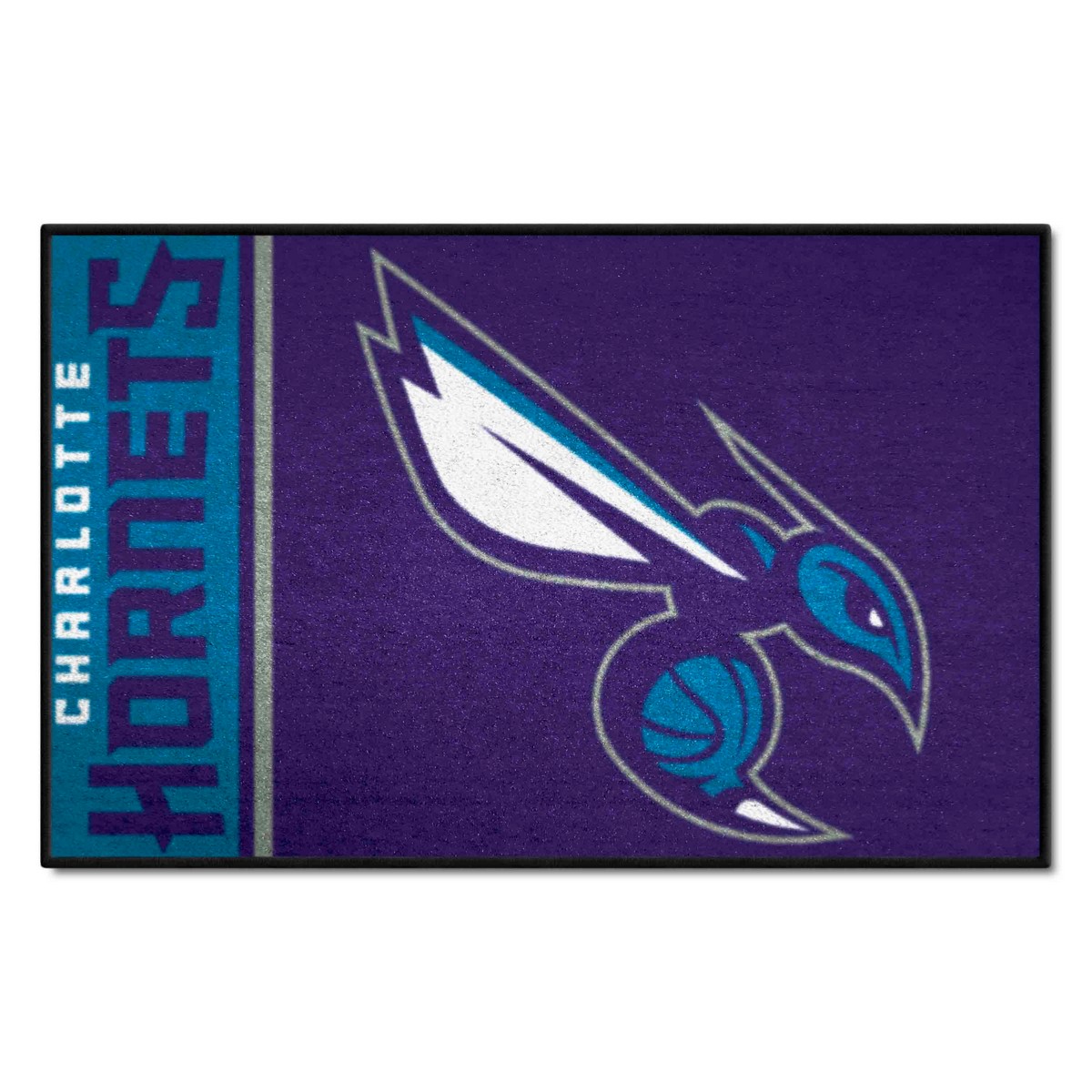 | Charlotte Hornets Starter Mat Accent Rug - 19in. x 30in. 9 Ounce, 100 % Nylon Face Recycled vinyl backing for a durable and longer-lasting product Machine made and tufted in the USA Non-skid backing with serged borders for added durability Machine washable; vacuum regularly and spot clean for any easy and quick clean Officially licensed and chromojet-printed in true team colors for vibrant, lasting color NBA - Charlotte Hornets in North Carolina NBA National Basketball Association |