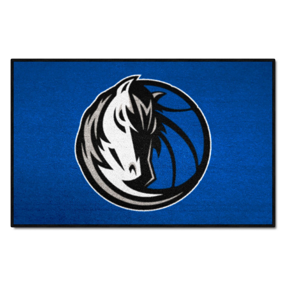 | Dallas Mavericks Starter Mat Accent Rug - 19in. x 30in. 9 Ounce, 100 % Nylon Face Recycled vinyl backing for a durable and longer-lasting product Machine made and tufted in the USA Non-skid backing with serged borders for added durability Machine washable; vacuum regularly and spot clean for any easy and quick clean Officially licensed and chromojet-printed in true team colors for vibrant, lasting color NBA - Dallas Mavericks in Texas NBA National Basketball Association |