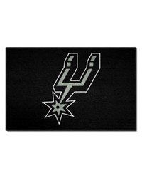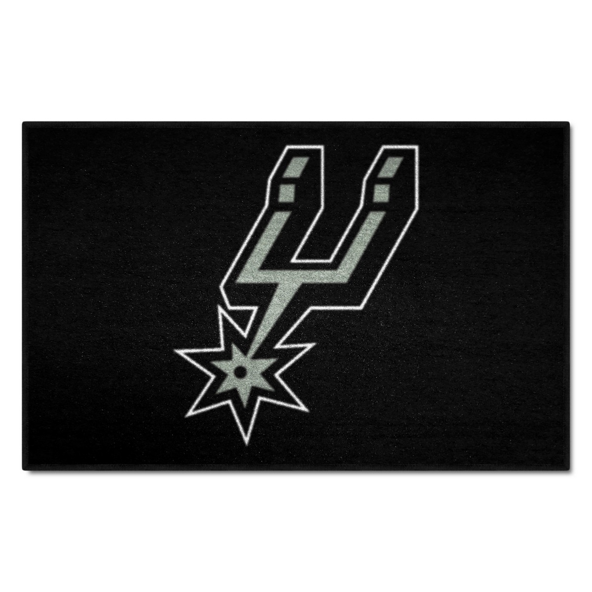 | San Antonio Spurs Starter Mat Accent Rug - 19in. x 30in. 9 Ounce, 100 % Nylon Face Recycled vinyl backing for a durable and longer-lasting product Machine made and tufted in the USA Non-skid backing with serged borders for added durability Machine washable; vacuum regularly and spot clean for any easy and quick clean Officially licensed and chromojet-printed in true team colors for vibrant, lasting color NBA - San Antonio Spurs in Texas NBA National Basketball Association |