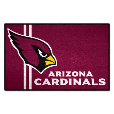 | Arizona Cardinals Starter Mat Accent Rug Uniform Style - 19in. x 30in. 9 Ounce, 100 % Nylon Face Recycled vinyl backing for a durable and longer-lasting product Machine made and tufted in the USA Non-skid backing with serged borders for added durability Machine washable; vacuum regularly and spot clean for any easy and quick clean Officially licensed and chromojet-printed in true team colors for vibrant, lasting color NFL - Arizona Cardinals in Arizona NFL National Football League |