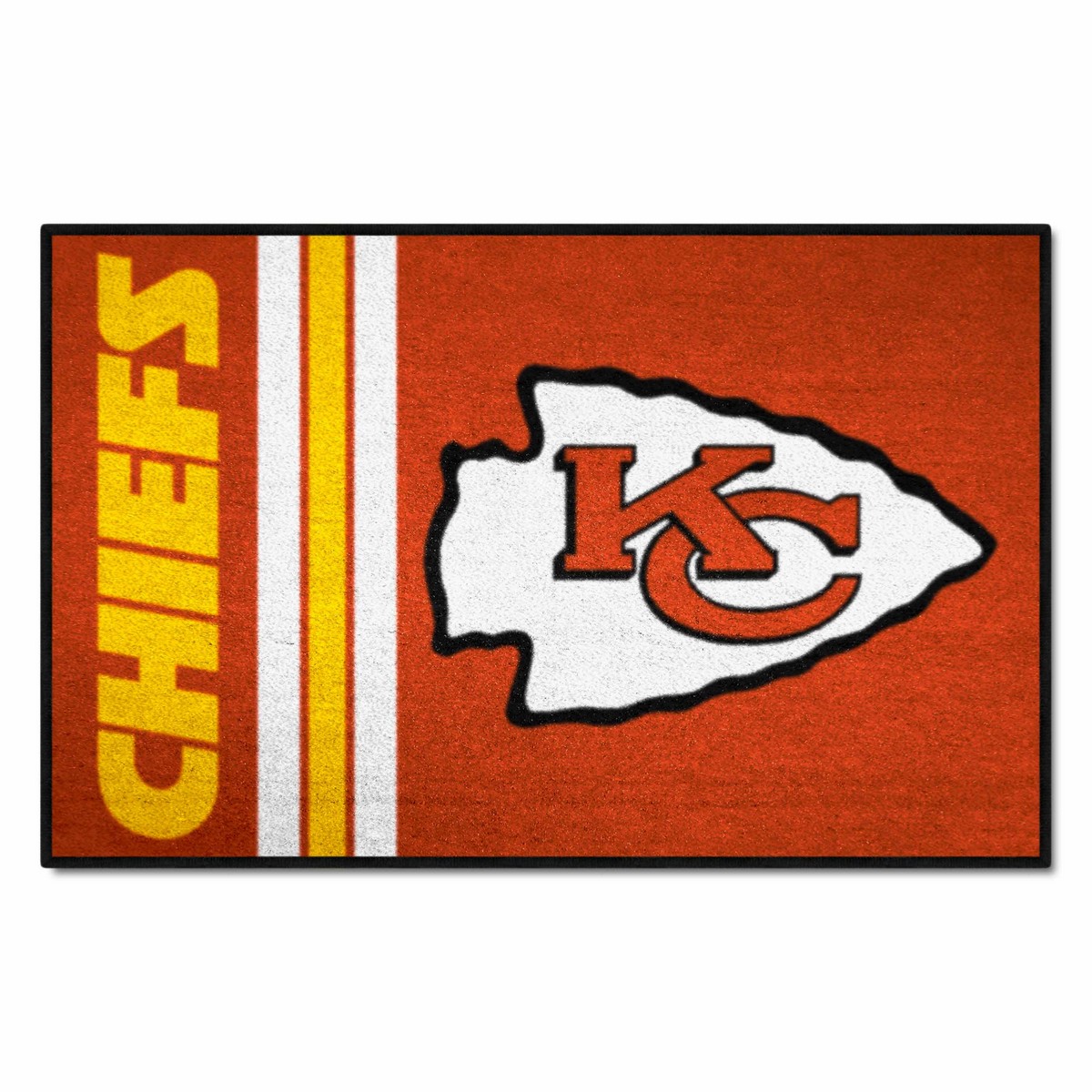 | Kansas City Chiefs Starter Mat Accent Rug - 19in. x 30in. 9 Ounce, 100 % Nylon Face Recycled vinyl backing for a durable and longer-lasting product Machine made and tufted in the USA Non-skid backing with serged borders for added durability Machine washable; vacuum regularly and spot clean for any easy and quick clean Officially licensed and chromojet-printed in true team colors for vibrant, lasting color NFL - Kansas City Chiefs in Missouri NFL National Football League |