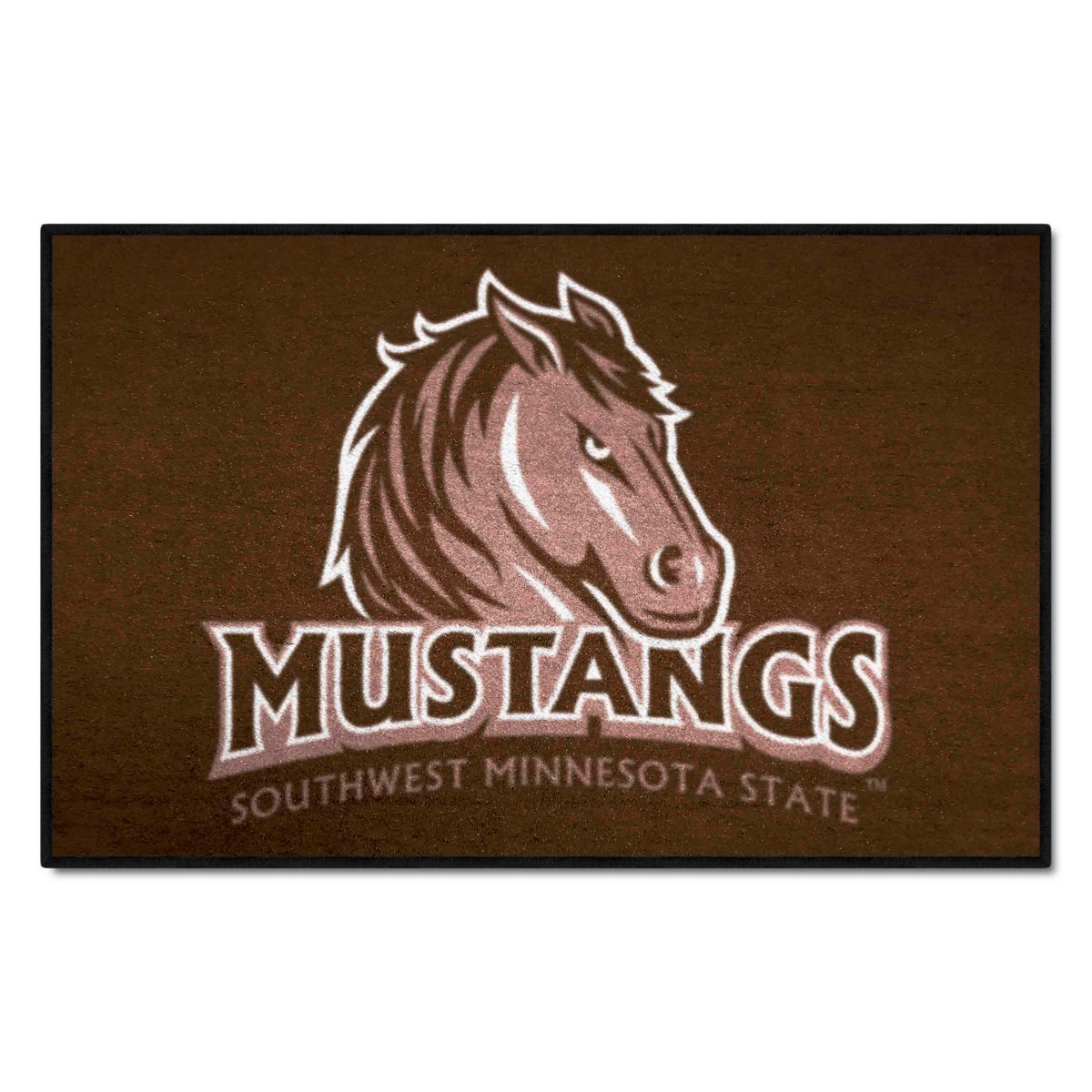 | Southwest Minnesota State Mustangs Starter Mat Accent Rug - 19in. x 30in. 9 Ounce, 100 % Nylon Face Recycled vinyl backing for a durable and longer-lasting product Machine made and tufted in the USA Non-skid backing with serged borders for added durability Machine washable; vacuum regularly and spot clean for any easy and quick clean Officially licensed and chromojet-printed in true team colors for vibrant, lasting color Southwest Minnesota State University in Minnesota |