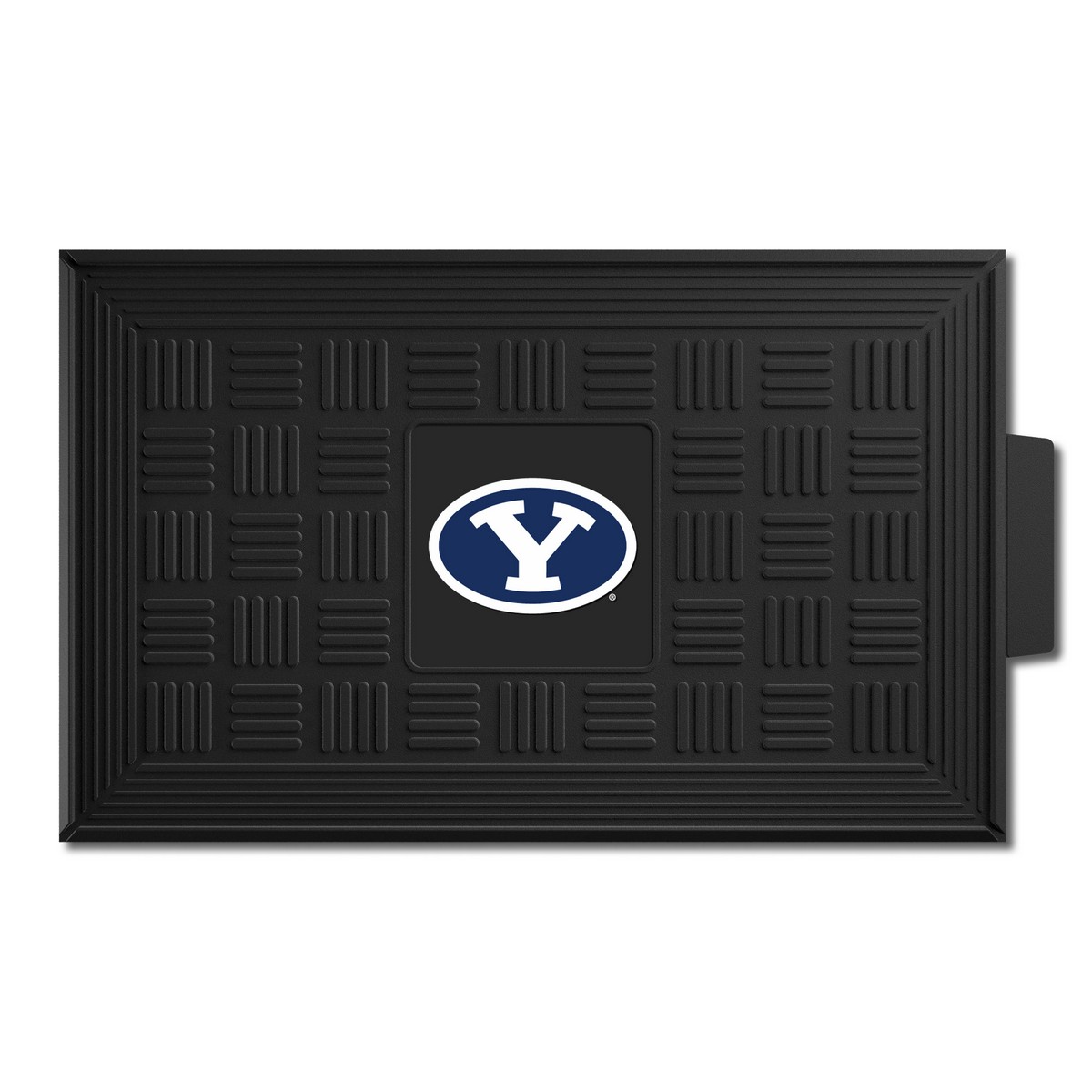 | BYU Cougars Heavy Duty Vinyl Medallion Door Mat - 19.5in. x 31in. 3-D logo molded in true team colors Made of 100% vinyl for a durable and long-lasting door mat Durable weather-resistant door mat withstands seasonal change, use outside all year long Cleans your shoes as the ridges scrape the dirt off and the deep reservoirs hold and drain water through its corner slots Designed for both indoor and outdoor use Clean with a garden hose for easy maintenance Brigham Young University in Utah WARNING: This product can expose you to chemicals including, DINP, which is known to the State of California to casue cancer. For more information, go to www.P65Warnings.ca.gov |