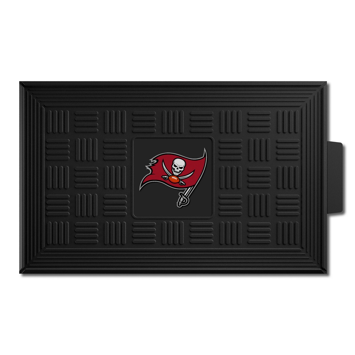 | Tampa Bay Buccaneers Heavy Duty Vinyl Medallion Door Mat - 19.5in. x 31in. 3-D logo molded in true team colors Made of 100% vinyl for a durable and long-lasting door mat Durable weather-resistant door mat withstands seasonal change, use outside all year long Cleans your shoes as the ridges scrape the dirt off and the deep reservoirs hold and drain water through its corner slots Designed for both indoor and outdoor use Clean with a garden hose for easy maintenance NFL - Tampa Bay Buccaneers in Florida WARNING: This product can expose you to chemicals including, DINP, which is known to the State of California to casue cancer. For more information, go to www.P65Warnings.ca.gov NFL National Football League |