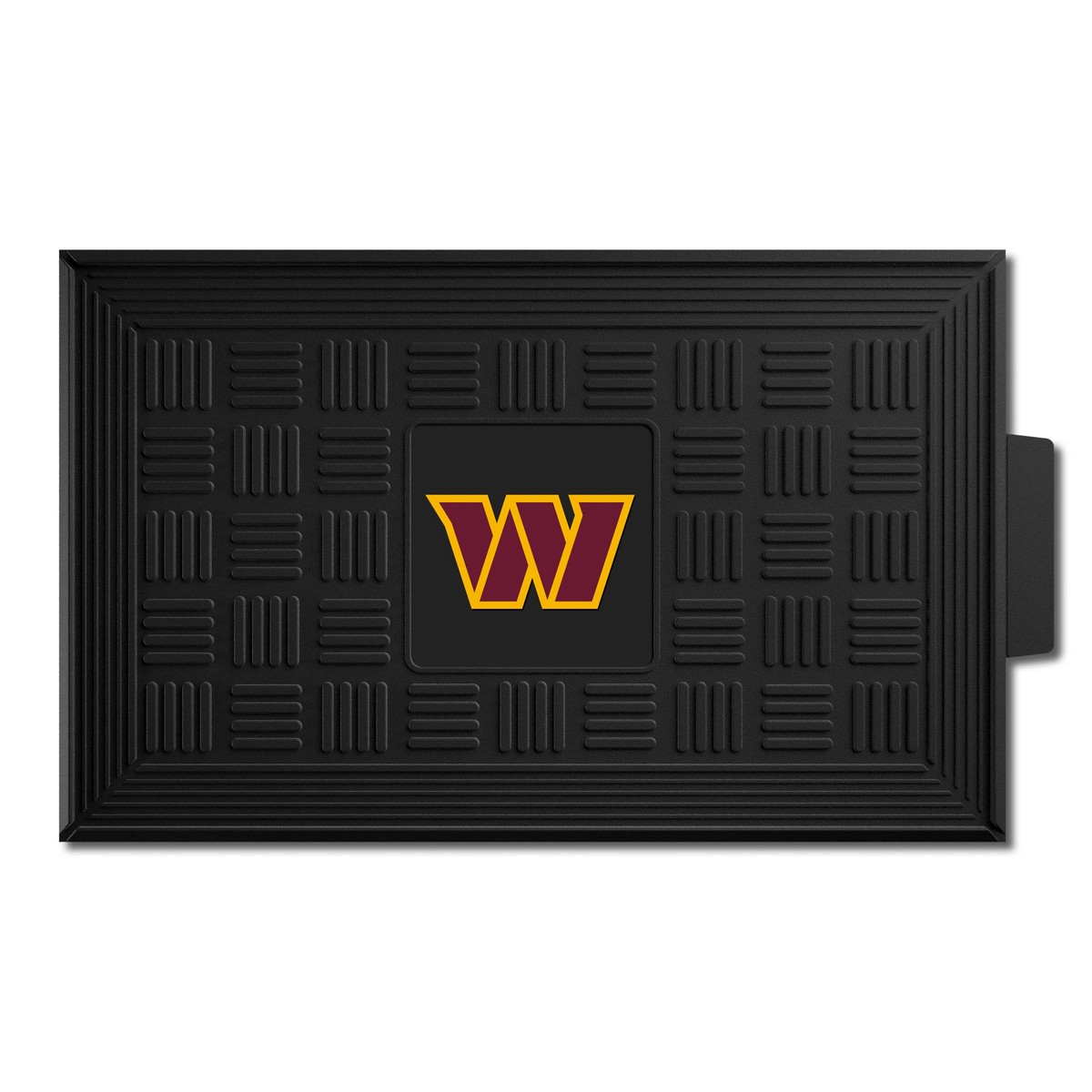 | Washington Commanders Heavy Duty Vinyl Medallion Door Mat - 19.5in. x 31in. 3-D logo molded in true team colors Made of 100% vinyl for a durable and long-lasting door mat Durable weather-resistant door mat withstands seasonal change, use outside all year long Cleans your shoes as the ridges scrape the dirt off and the deep reservoirs hold and drain water through its corner slots Designed for both indoor and outdoor use Clean with a garden hose for easy maintenance NFL - Washington Commanders in Maryland WARNING: This product can expose you to chemicals including, DINP, which is known to the State of California to casue cancer. For more information, go to www.P65Warnings.ca.gov NFL National Football League |