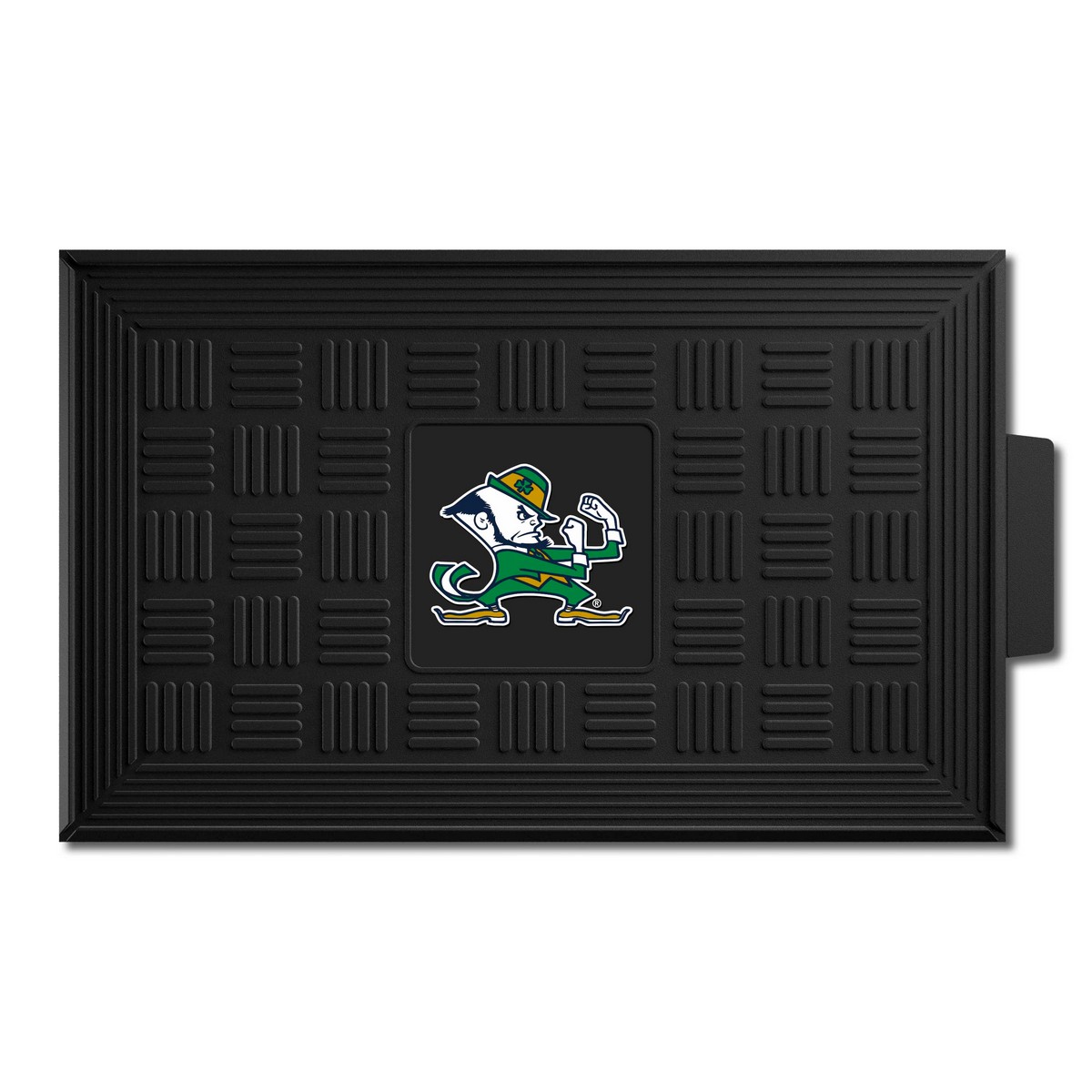 | Notre Dame Fighting Irish Heavy Duty Vinyl Medallion Door Mat - 19.5in. x 31in., Leprechaun 3-D logo molded in true team colors Made of 100% vinyl for a durable and long-lasting door mat Durable weather-resistant door mat withstands seasonal change, use outside all year long Cleans your shoes as the ridges scrape the dirt off and the deep reservoirs hold and drain water through its corner slots Designed for both indoor and outdoor use Clean with a garden hose for easy maintenance Notre Dame in Indiana WARNING: This product can expose you to chemicals including, DINP, which is known to the State of California to casue cancer. For more information, go to www.P65Warnings.ca.gov |