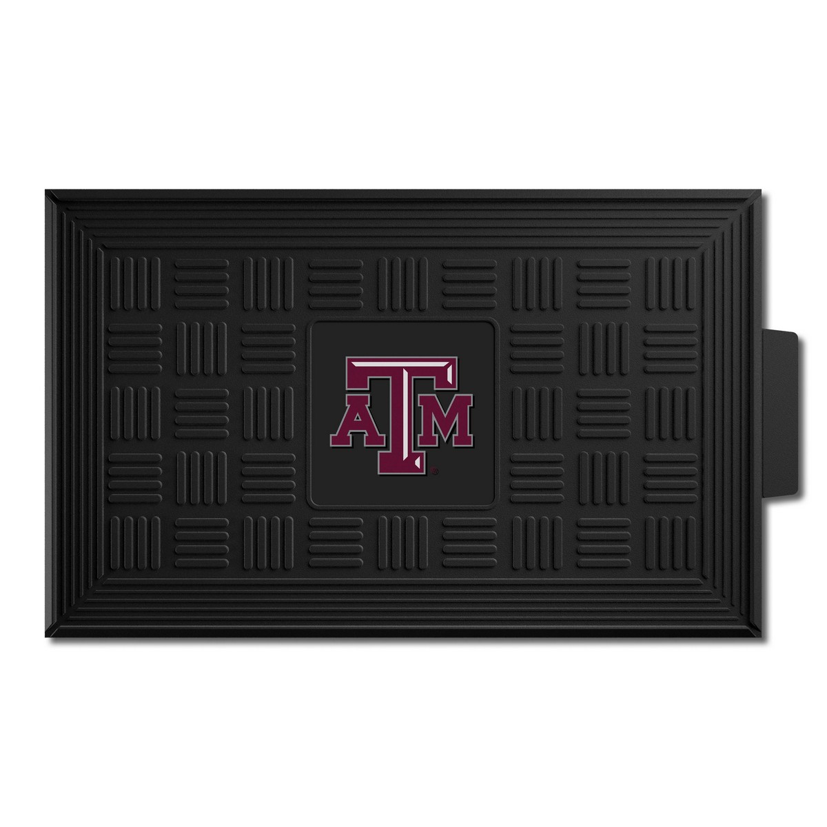 | Texas A&M Aggies Heavy Duty Vinyl Medallion Door Mat - 19.5in. x 31in. 3-D logo molded in true team colors Made of 100% vinyl for a durable and long-lasting door mat Durable weather-resistant door mat withstands seasonal change, use outside all year long Cleans your shoes as the ridges scrape the dirt off and the deep reservoirs hold and drain water through its corner slots Designed for both indoor and outdoor use Clean with a garden hose for easy maintenance Texas A&M University in Texas WARNING: This product can expose you to chemicals including, DINP, which is known to the State of California to casue cancer. For more information, go to www.P65Warnings.ca.gov |