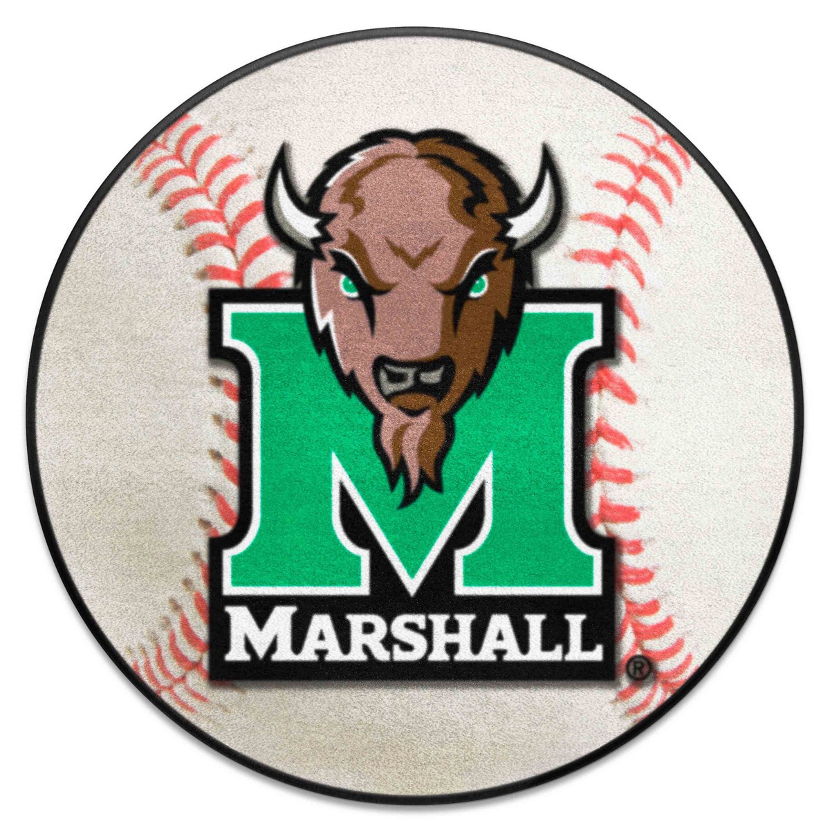 | Marshall Thundering Herd Baseball Rug - 27in. Diameter 9 Ounce, 100 % Nylon Face Recycled vinyl backing for a durable and longer-lasting product Machine made and tufted in the USA Non-skid backing with taped borders for added durability Machine washable; vacuum regularly and spot clean for any easy and quick clean Officially licensed and chromojet-printed in true team colors for vibrant, lasting color Marshall University in West Virginia |