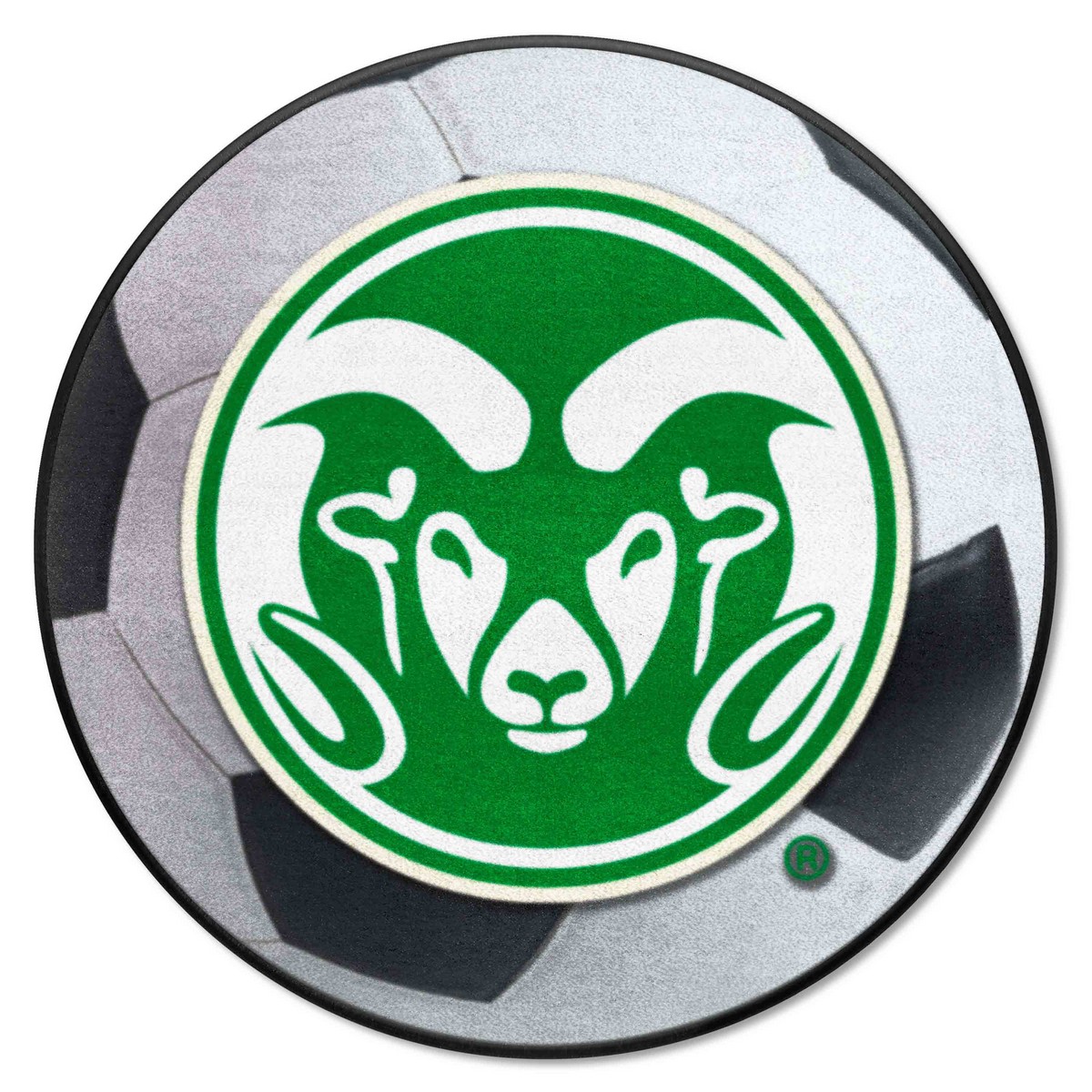 | Colorado State Rams Soccer Ball Rug - 27in. Diameter 9 Ounce, 100 % Nylon Face Recycled vinyl backing for a durable and longer-lasting product Machine made and tufted in the USA Non-skid backing with taped borders for added durability Machine washable; vacuum regularly and spot clean for any easy and quick clean Officially licensed and chromojet-printed in true team colors for vibrant, lasting color Colorado State University in Colorado |