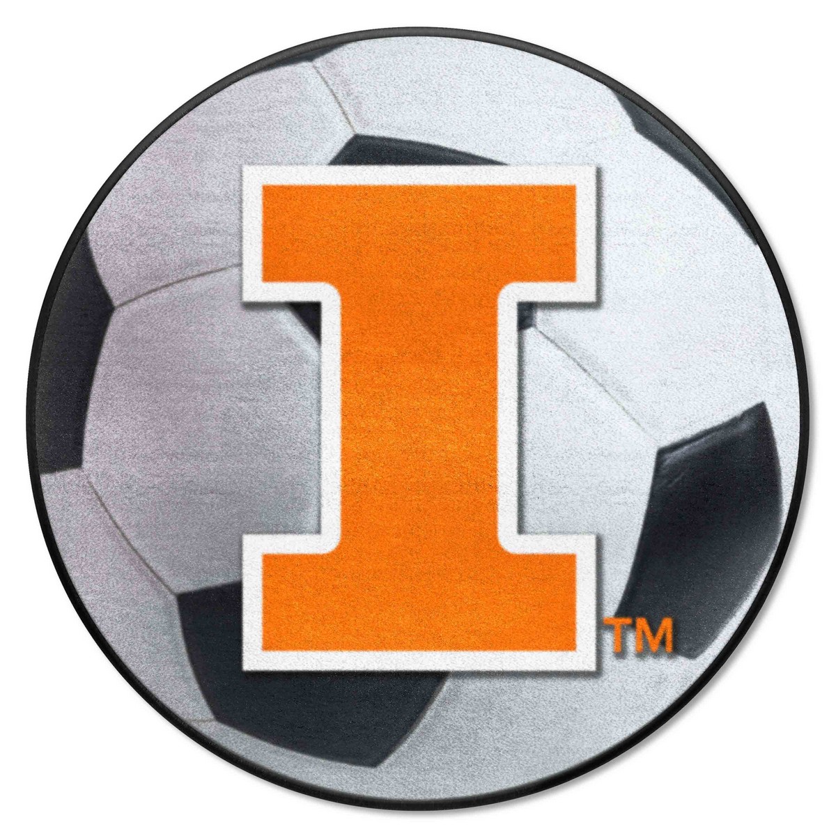 | Illinois Illini Soccer Ball Rug - 27in. Diameter 9 Ounce, 100 % Nylon Face Recycled vinyl backing for a durable and longer-lasting product Machine made and tufted in the USA Non-skid backing with taped borders for added durability Machine washable; vacuum regularly and spot clean for any easy and quick clean Officially licensed and chromojet-printed in true team colors for vibrant, lasting color University of Illinois in Illinois |