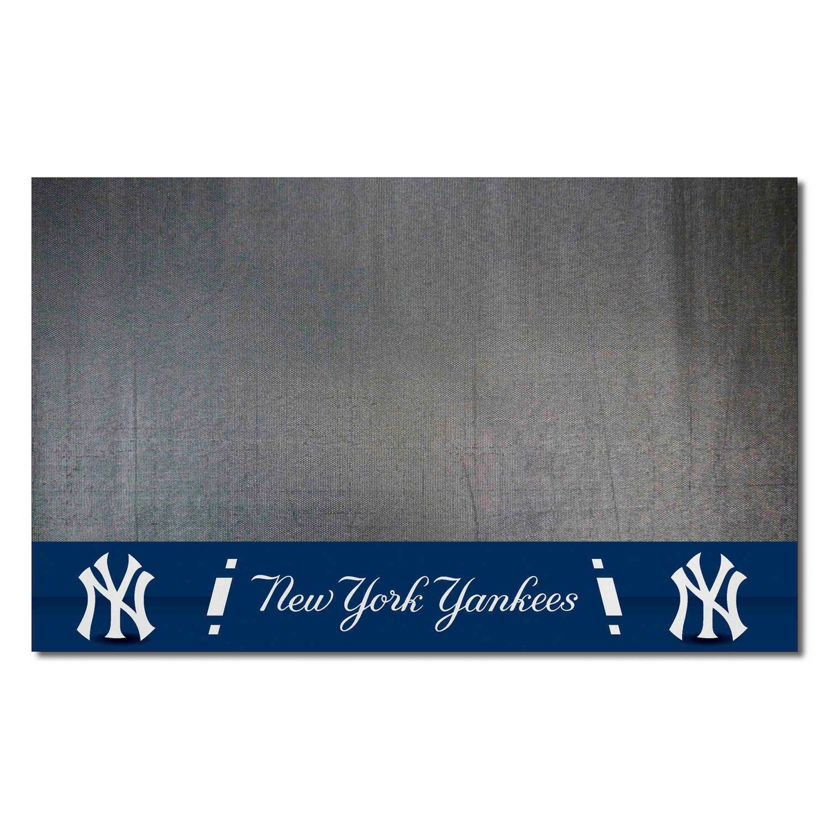 | New York Yankees Vinyl Grill Mat - 26in. x 42in. Made of 100% vinyl Universal size - fits under most grills Prevents spills from soaking in and staining Oil, flame, and UV resistant Non-skid surface keeps grill in place Easily cleaned with a water hose MLB - New York Yankees in New York MLB Major League Baseball |
