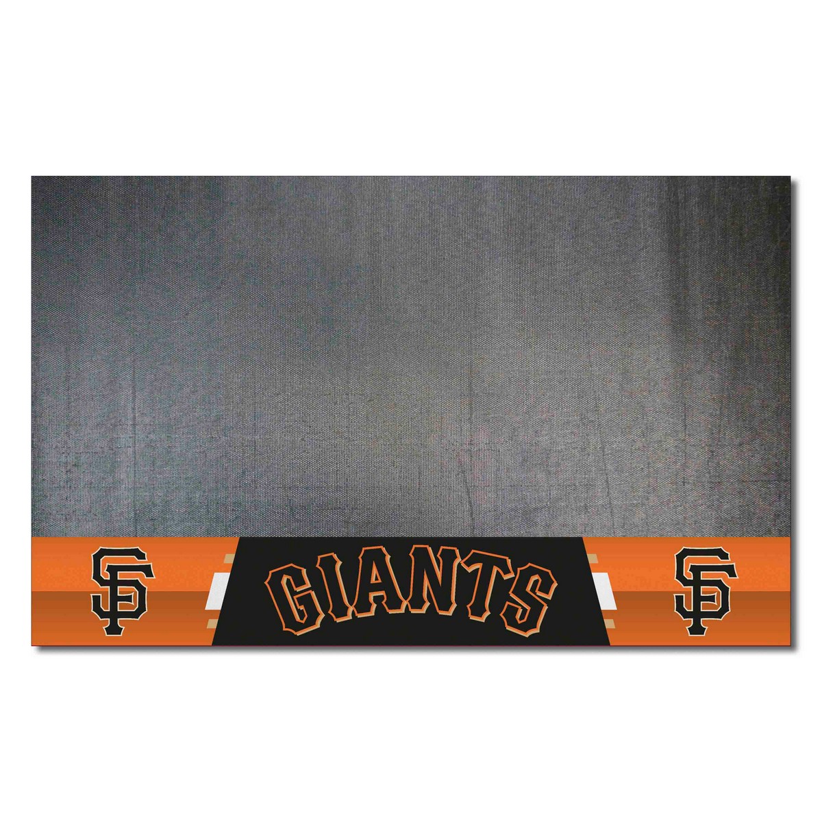 | San Francisco Giants Vinyl Grill Mat - 26in. x 42in. Made of 100% vinyl Universal size - fits under most grills Prevents spills from soaking in and staining Oil, flame, and UV resistant Non-skid surface keeps grill in place Easily cleaned with a water hose MLB - San Francisco Giants in California MLB Major League Baseball |