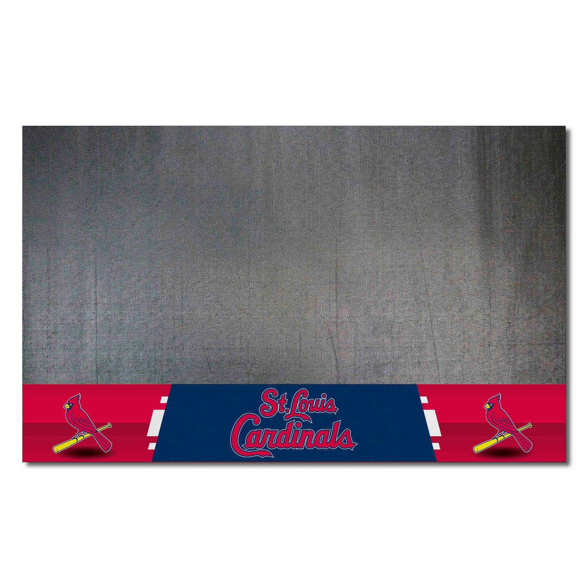 | St. Louis Cardinals Vinyl Grill Mat - 26in. x 42in. Made of 100% vinyl Universal size - fits under most grills Prevents spills from soaking in and staining Oil, flame, and UV resistant Non-skid surface keeps grill in place Easily cleaned with a water hose MLB - St. Louis Cardinals in Missouri MLB Major League Baseball |