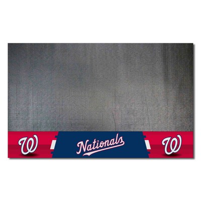 | Washington Nationals Vinyl Grill Mat - 26in. x 42in. Made of 100% vinyl Universal size - fits under most grills Prevents spills from soaking in and staining Oil, flame, and UV resistant Non-skid surface keeps grill in place Easily cleaned with a water hose MLB - Washington Nationals in District of Columbia MLB Major League Baseball |