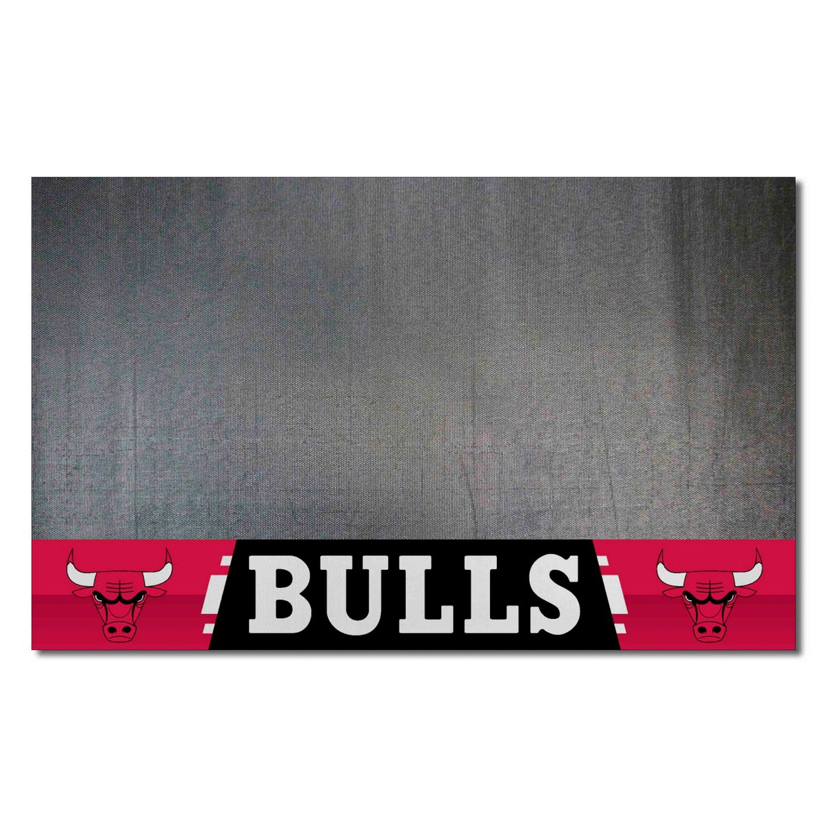 | Chicago Bulls Vinyl Grill Mat - 26in. x 42in. Made of 100% vinyl Universal size - fits under most grills Prevents spills from soaking in and staining Oil, flame, and UV resistant Non-skid surface keeps grill in place Easily cleaned with a water hose NBA - Chicago Bulls in Illinois NBA National Basketball Association |