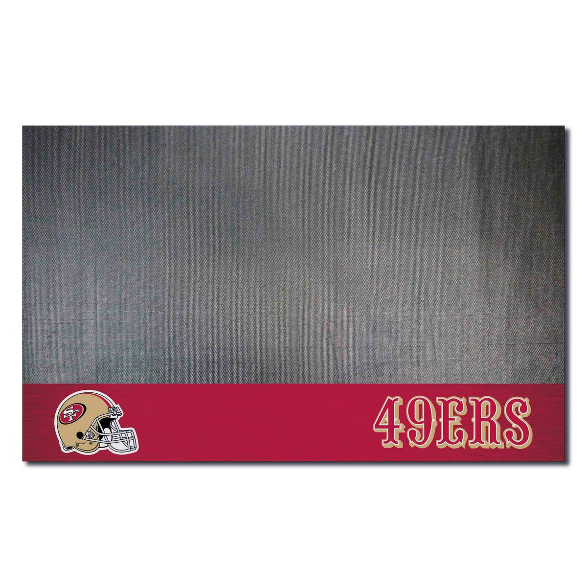 | San Francisco 49ers Vinyl Grill Mat - 26in. x 42in. Made of 100% vinyl Universal size - fits under most grills Prevents spills from soaking in and staining Oil, flame, and UV resistant Non-skid surface keeps grill in place Easily cleaned with a water hose NFL - San Francisco 49ers in California NFL National Football League |