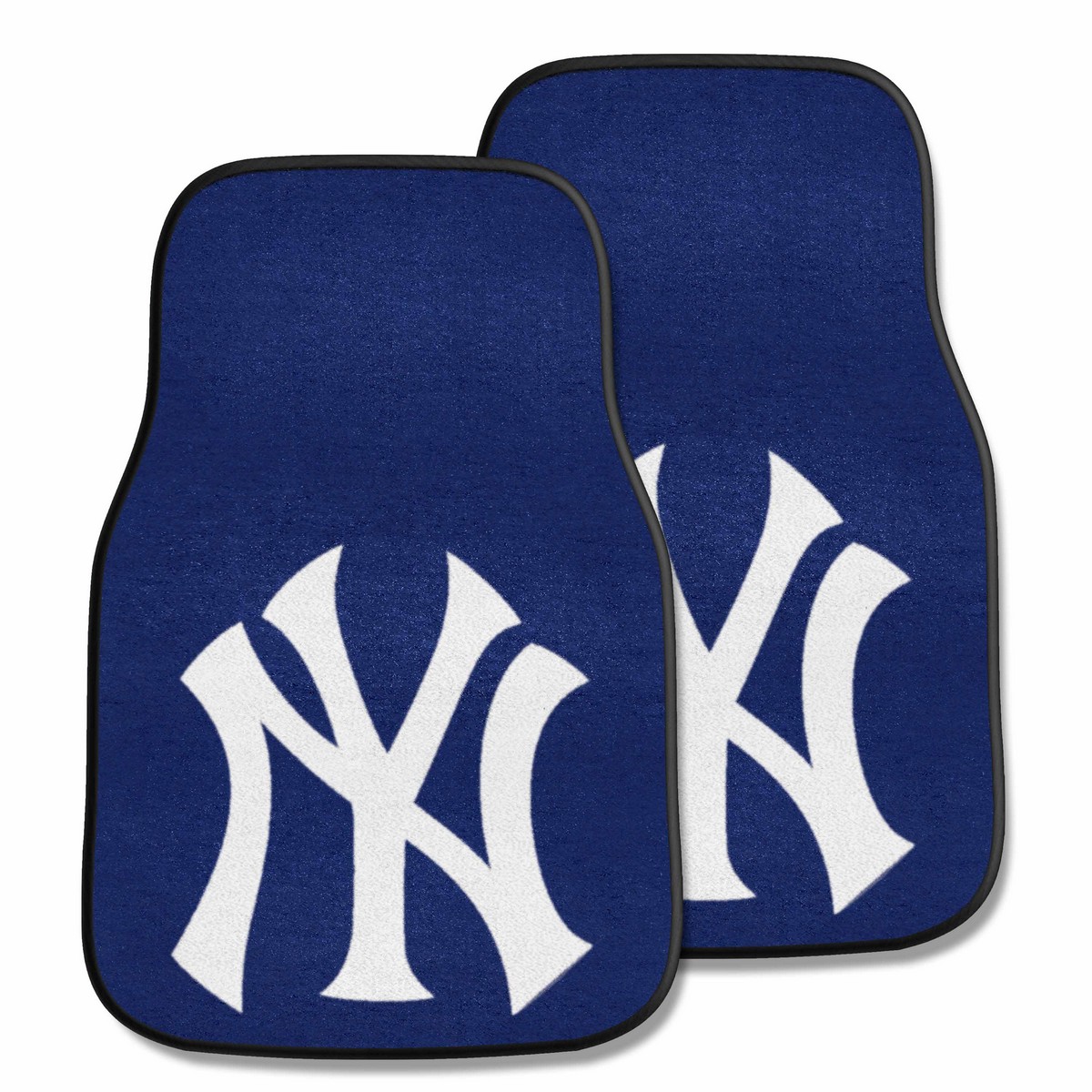 | New York Yankees Front Carpet Car Mat Set - 2 Pieces Universal size to fit all vehicle types 100% Nylon face that is chromojet-printed for true team colors Taped edges and vinyl backing add durability and longer life Nibbed backing to keep from skidding Made in the USA Machine washable for easy cleaning; do not put in dryer MLB - New York Yankees in New York MLB Major League Baseball |