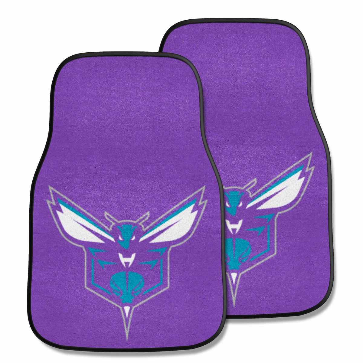 | Charlotte Hornets Front Carpet Car Mat Set - 2 Pieces Universal size to fit all vehicle types 100% Nylon face that is chromojet-printed for true team colors Taped edges and vinyl backing add durability and longer life Nibbed backing to keep from skidding Made in the USA Machine washable for easy cleaning; do not put in dryer NBA - Charlotte Hornets in North Carolina NBA National Basketball Association |