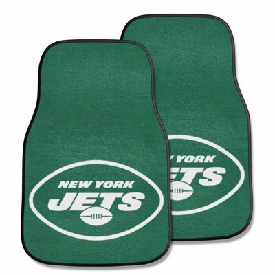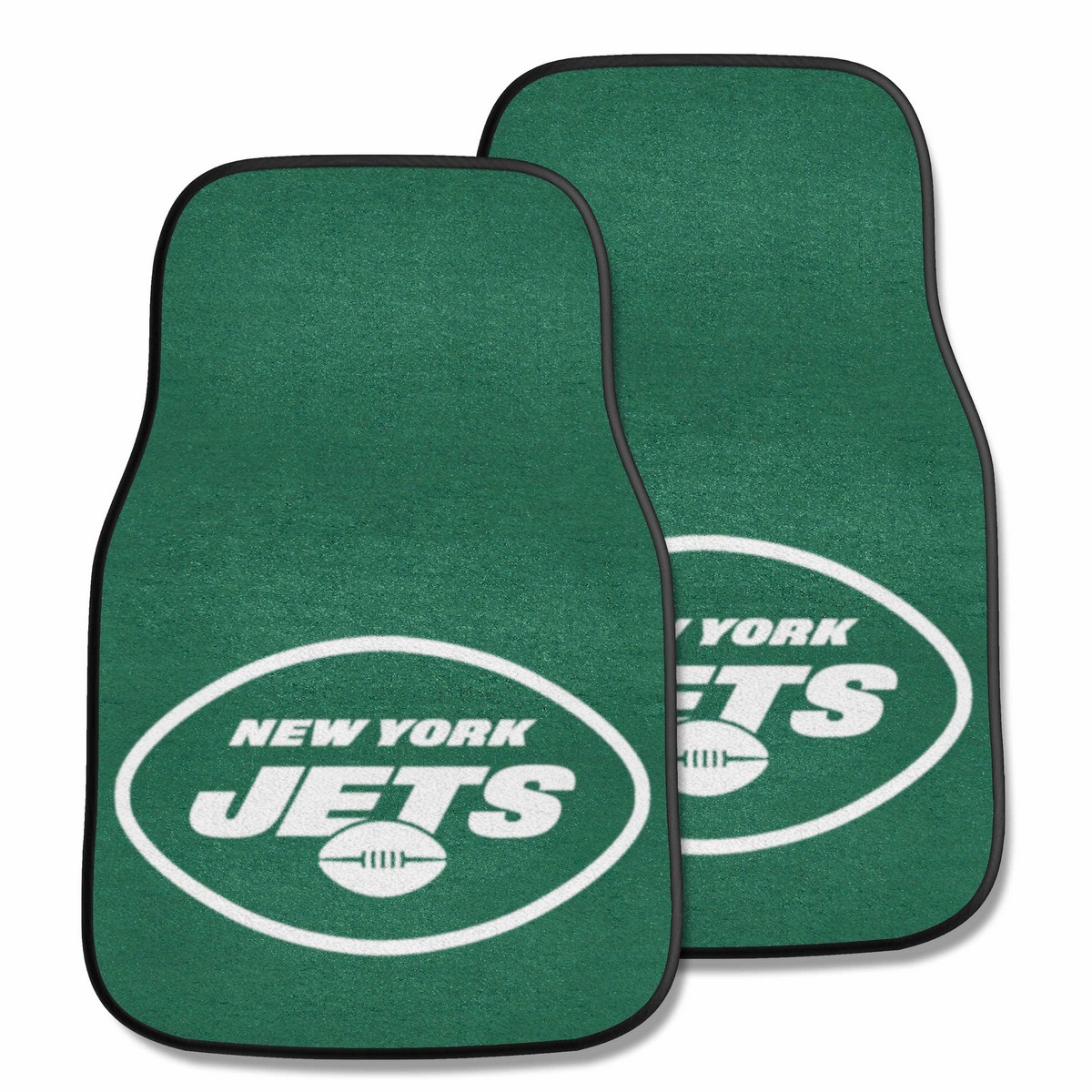 | New York Jets Front Carpet Car Mat Set - 2 Pieces Universal size to fit all vehicle types 100% Nylon face that is chromojet-printed for true team colors Taped edges and vinyl backing add durability and longer life Nibbed backing to keep from skidding Made in the USA Machine washable for easy cleaning; do not put in dryer NFL - New York Jets in New Jersey NFL National Football League |