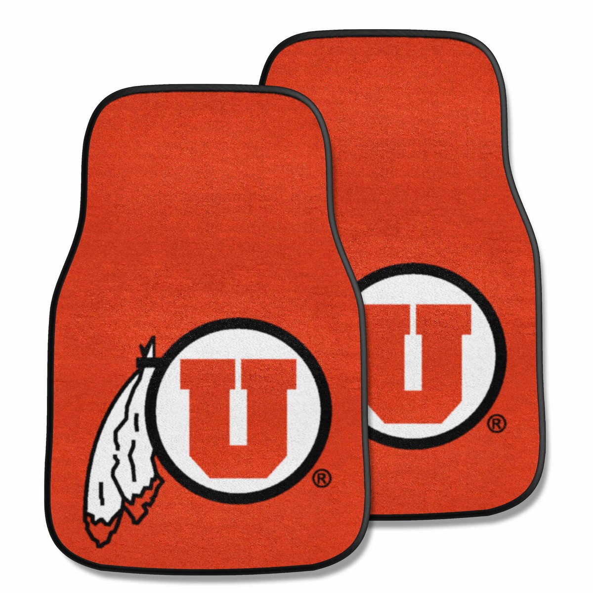 | Utah Utes Front Carpet Car Mat Set - 2 Pieces Universal size to fit all vehicle types 100% Nylon face that is chromojet-printed for true team colors Taped edges and vinyl backing add durability and longer life Nibbed backing to keep from skidding Made in the USA Machine washable for easy cleaning; do not put in dryer University of Utah in Utah |