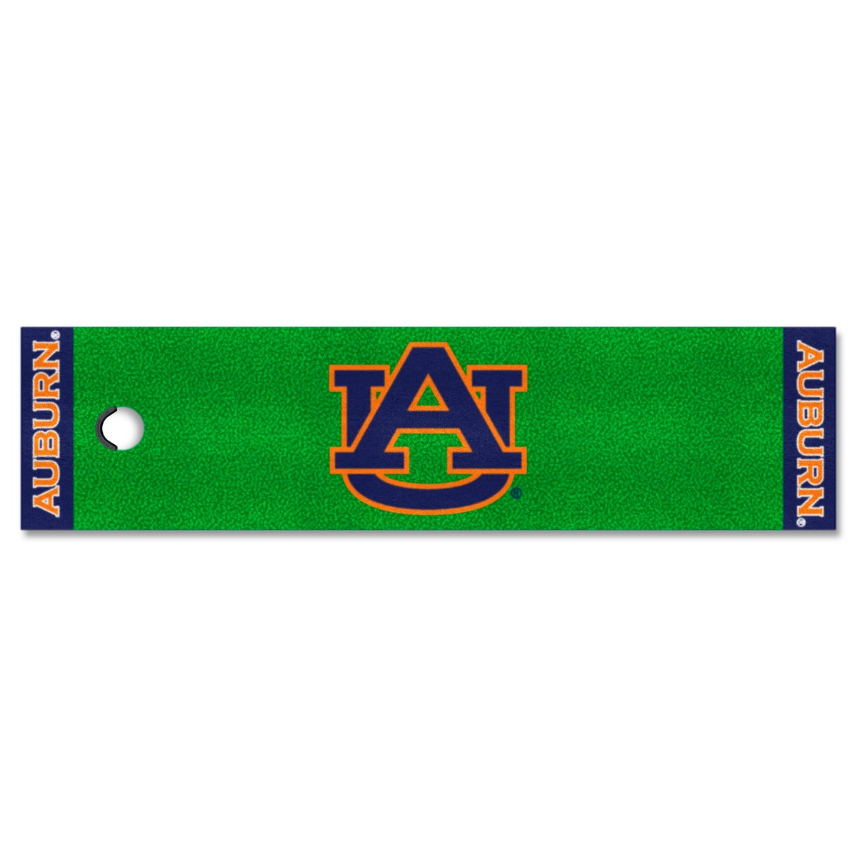| Auburn Tigers Putting Green Mat - 1.5ft. x 6ft. Realistic putting surface (11* on golf Stimpmeter) Includes putting target barrier/backstop Durable vinyl backing keeps mat in place 100% Nylon Face Doubles as a runner when not in use Officially licensed and chromojet printed in true team colors Auburn University in Alabama |
