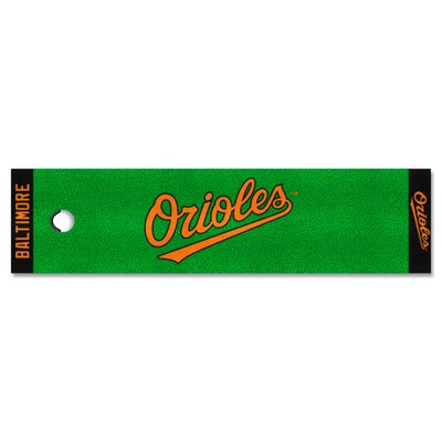 | Baltimore Orioles Putting Green Mat - 1.5ft. x 6ft. "Orioles" Logo Realistic putting surface (11* on golf Stimpmeter) Includes putting target barrier/backstop Durable vinyl backing keeps mat in place 100% Nylon Face Doubles as a runner when not in use Officially licensed and chromojet printed in true team colors MLB - Baltimore Orioles in Maryland MLB Major League Baseball |