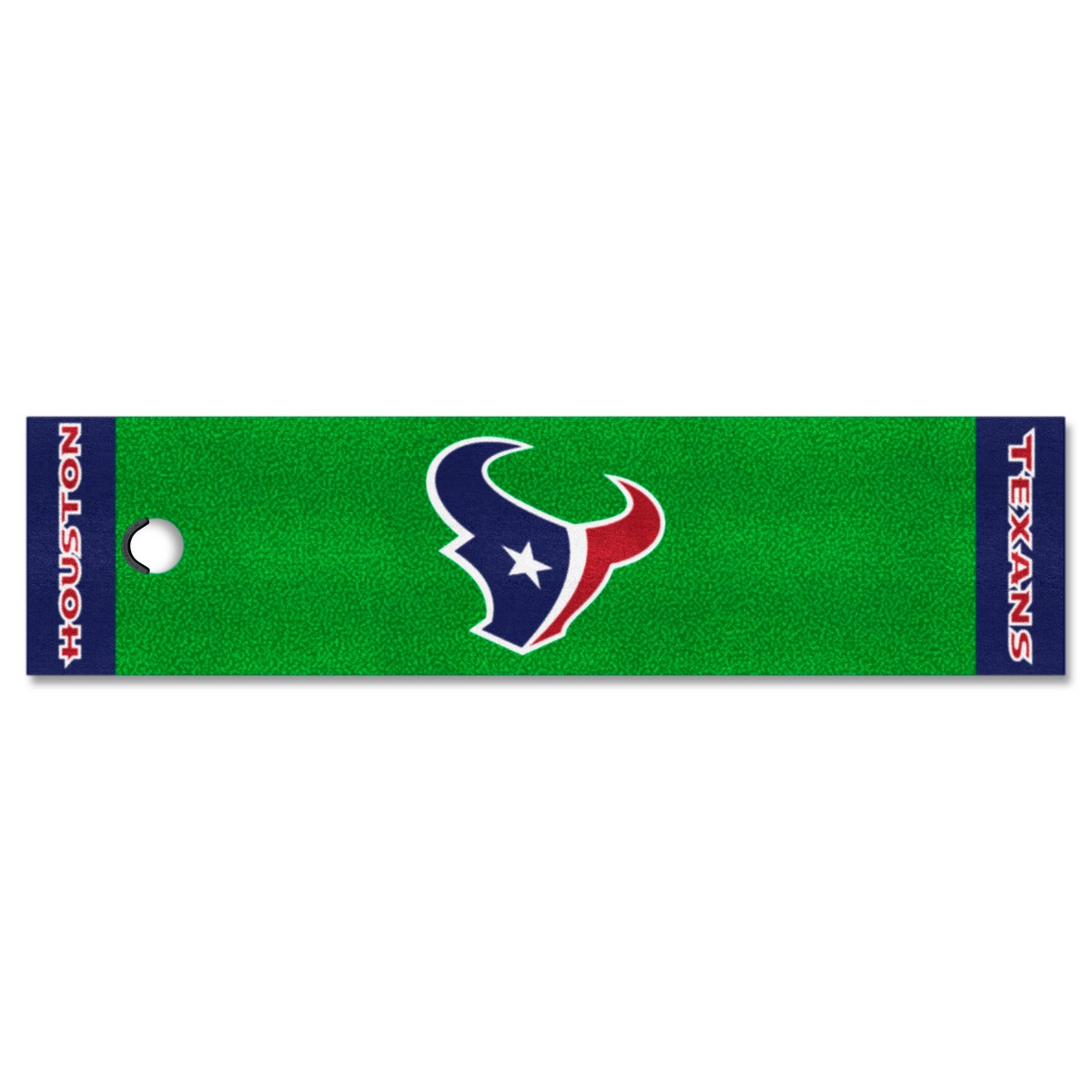 | Houston Texans Putting Green Mat - 1.5ft. x 6ft. Realistic putting surface (11* on golf Stimpmeter) Includes putting target barrier/backstop Durable vinyl backing keeps mat in place 100% Nylon Face Doubles as a runner when not in use Officially licensed and chromojet printed in true team colors NFL - Houston Texans in Texas NFL National Football League |