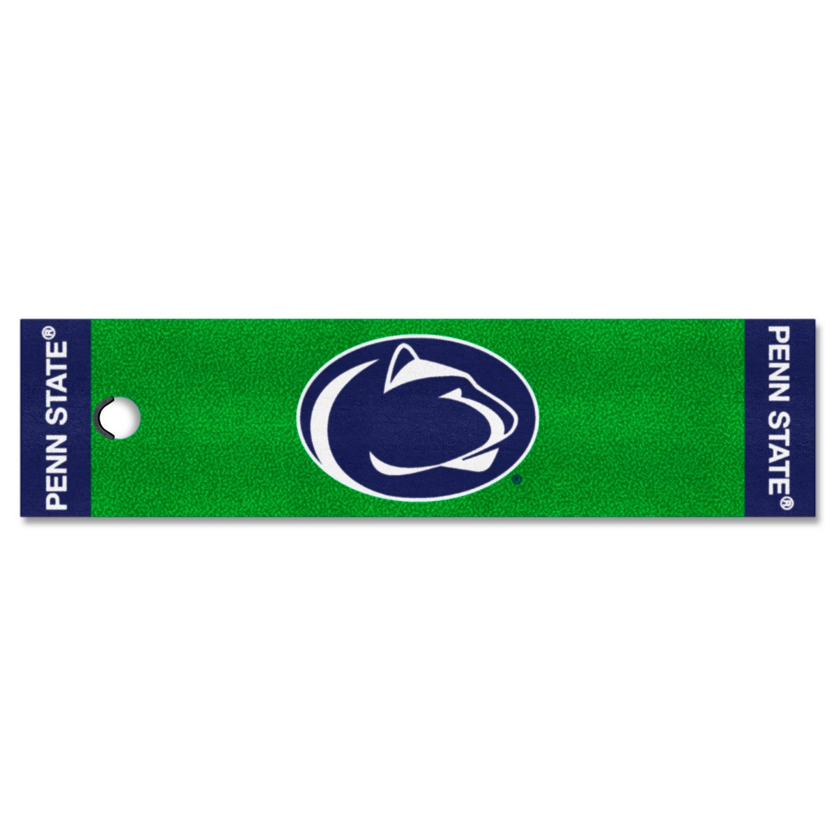 | Penn State Nittany Lions Putting Green Mat - 1.5ft. x 6ft. Realistic putting surface (11* on golf Stimpmeter) Includes putting target barrier/backstop Durable vinyl backing keeps mat in place 100% Nylon Face Doubles as a runner when not in use Officially licensed and chromojet printed in true team colors Pennsylvania State University in Pennsylvania |