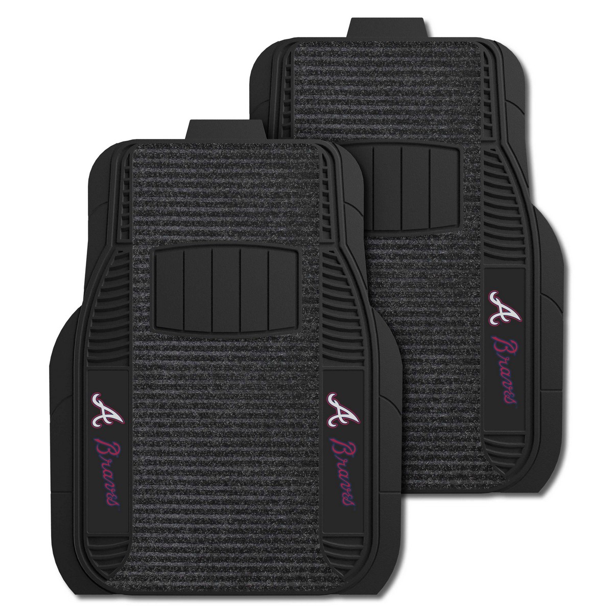 | Atlanta Braves 2 Piece Deluxe Car Mat Set Vinyl & dual ribbed charcoal carpet construction Dirt catching dual ribbed carpet Trimmable edges for a custom fit Nibbed backing keeps mats in place while driving for added safety Molded logos in true team colors Deep pockets catch and hold dirt and water MLB - Atlanta Braves in Georgia WARNING: This product can expose you to chemicals including, DINP, which is known to the State of California to casue cancer. For more information, go to www.P65Warnings.ca.gov MLB Major League Baseball |