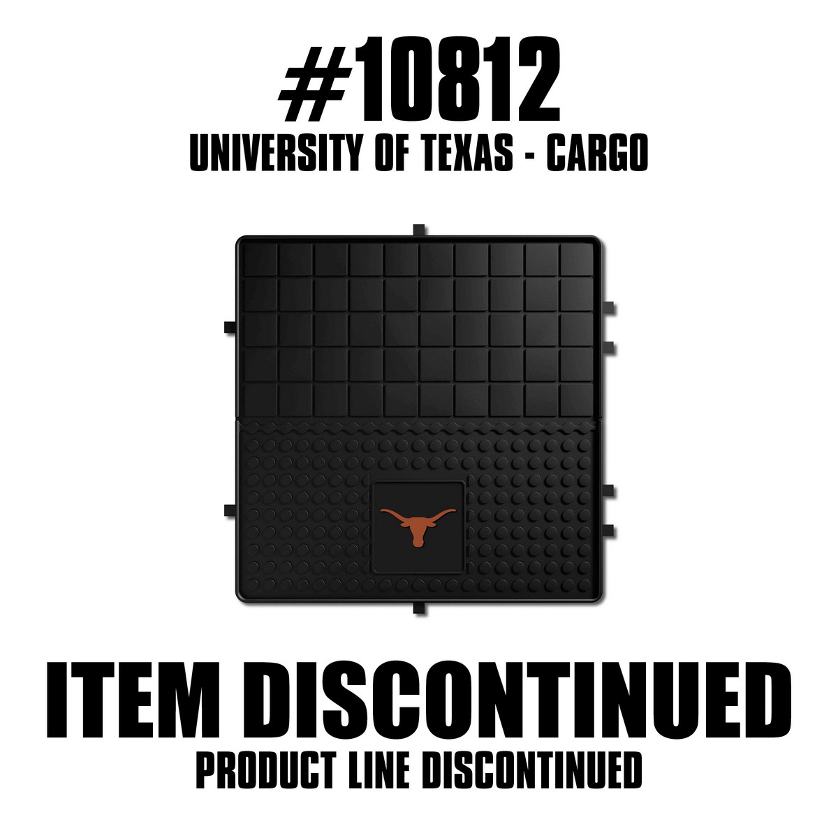 | Texas Longhorns Heavy Duty Cargo Mat 31"x31" 100% heavy-duty vinyl construction adds durability Non-skid nibbed backing keeps mat in place Deep pockets catch and hold dirt and water Great for trunks, flat beds, and garages Molded logo in true team colors Made in the USA University of Texas in Texas WARNING: This product can expose you to chemicals including, DINP, which is known to the State of California to casue cancer. For more information, go to www.P65Warnings.ca.gov |